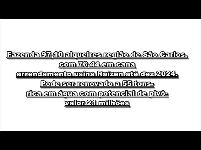 Fazenda 97,10 alqueires região de São Carlos.