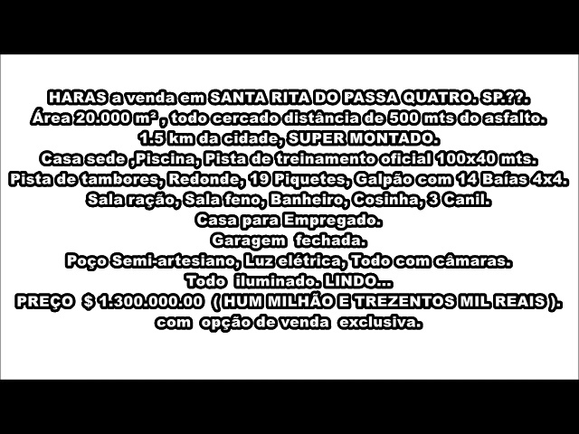 HARAS a venda em SANTA RITA DO PASSA QUATRO. SP.🐎.